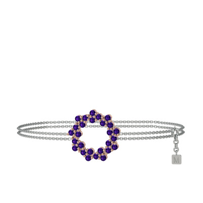 Ametist 14 ayar rose altın bilezik (40 cm gümüş rolo zincir)