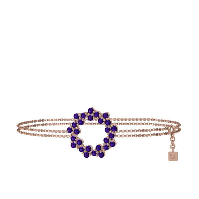 Ametist 18 ayar rose altın bilezik (40 cm rose altın rolo zincir)