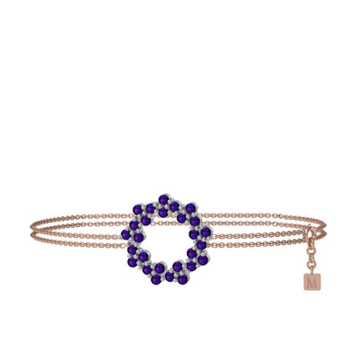 Ametist 8 ayar beyaz altın bilezik (40 cm gümüş rolo zincir)