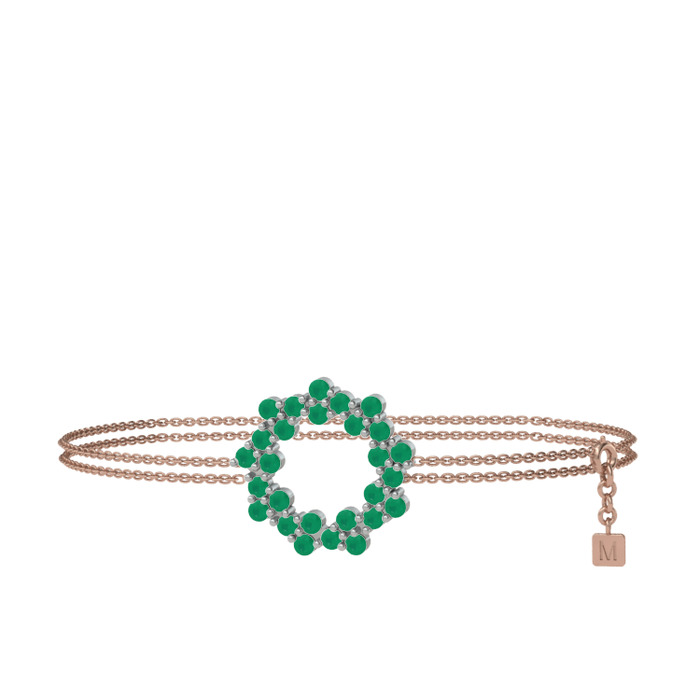 Kök zümrüt 14 ayar beyaz altın bilezik (40 cm rose altın rolo zincir)