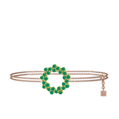Kök zümrüt 8 ayar altın bilezik (40 cm rose altın rolo zincir)