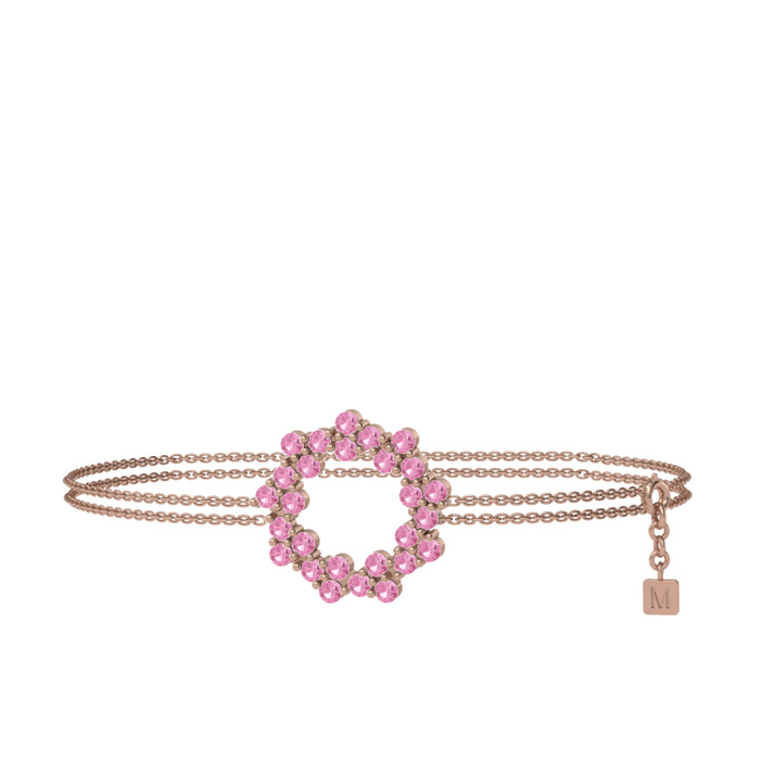 Pembe kuvars 14 ayar rose altın bilezik (40 cm rose altın rolo zincir)