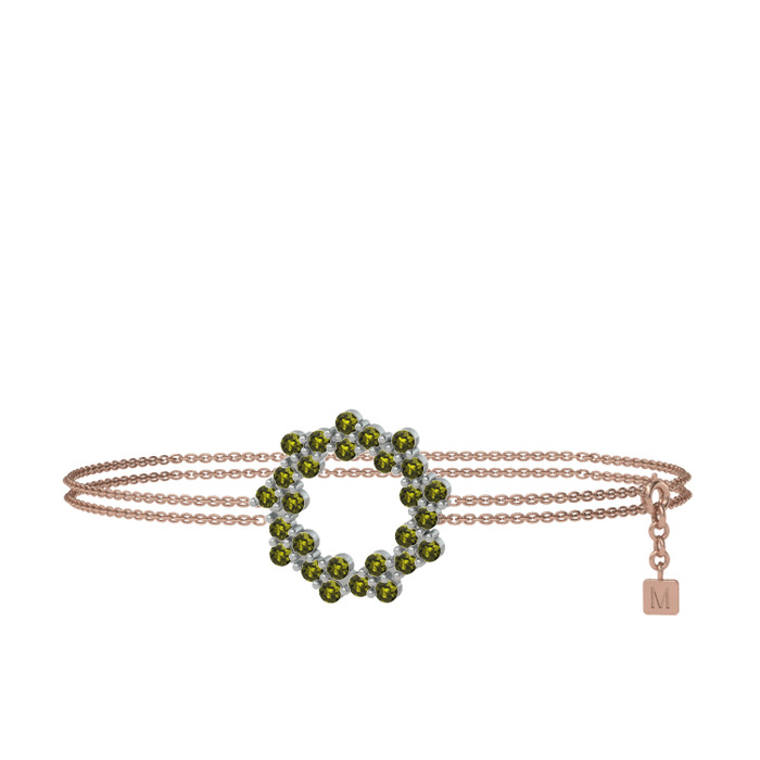 Peridot 14 ayar beyaz altın bilezik (40 cm gümüş rolo zincir)