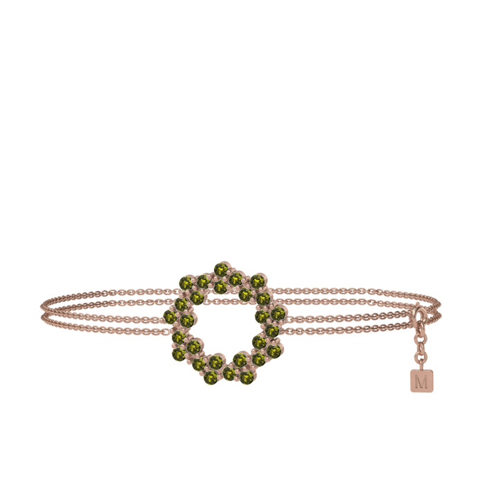 Peridot 8 ayar rose altın bilezik (40 cm rose altın rolo zincir)