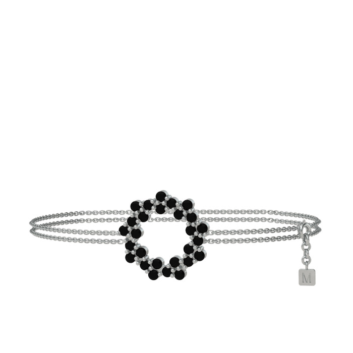 Siyah zirkon 18 ayar beyaz altın bilezik (40 cm beyaz altın rolo zincir)