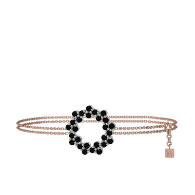 Siyah zirkon 18 ayar beyaz altın bilezik (40 cm rose altın rolo zincir)
