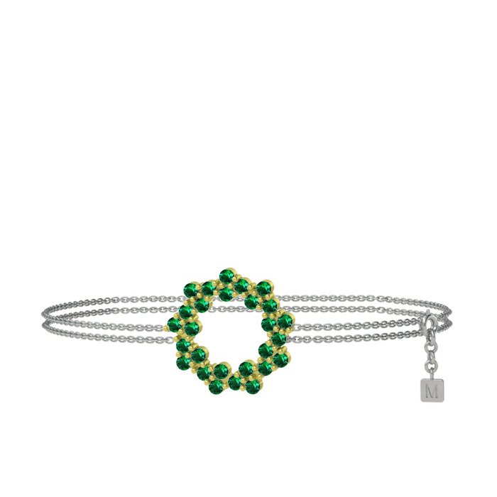 Yeşil kuvars 18 ayar altın bilezik (40 cm beyaz altın rolo zincir)