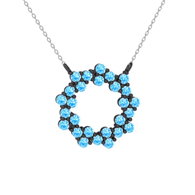 Akuamarin 925 ayar siyah rodyum kaplama gümüş kolye (40 cm beyaz altın rolo zincir)
