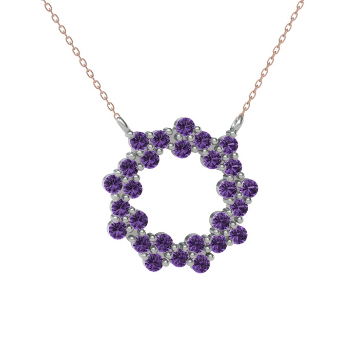 Ametist 14 ayar beyaz altın kolye (40 cm rose altın rolo zincir)