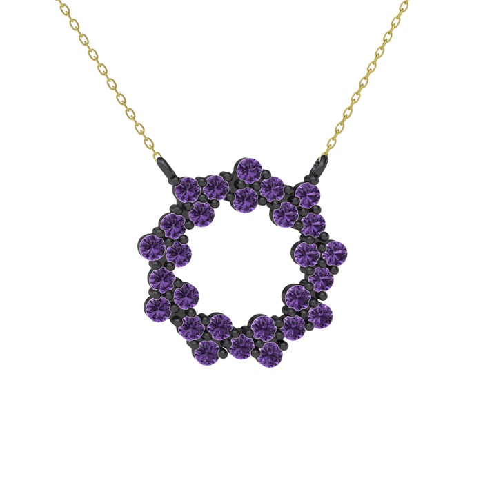 Ametist 925 ayar siyah rodyum kaplama gümüş kolye (40 cm altın rolo zincir)
