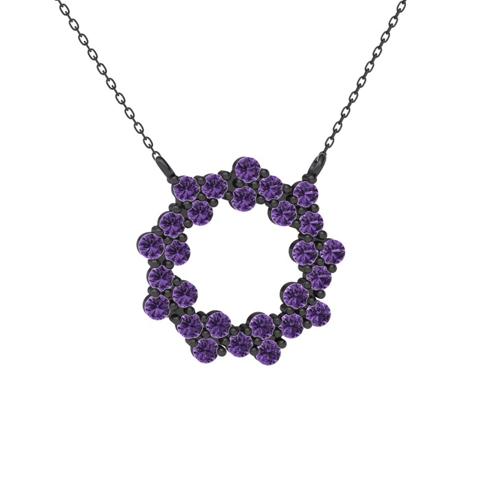 Ametist 925 ayar siyah rodyum kaplama gümüş kolye (40 cm gümüş rolo zincir)