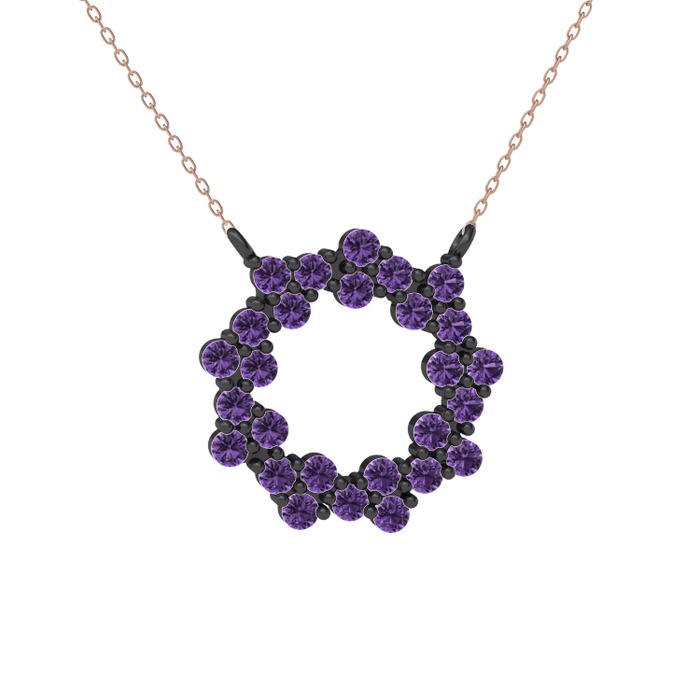 Ametist 925 ayar siyah rodyum kaplama gümüş kolye (40 cm rose altın rolo zincir)