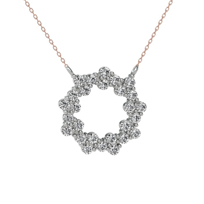 Beyaz zirkon 18 ayar beyaz altın kolye (40 cm rose altın rolo zincir)