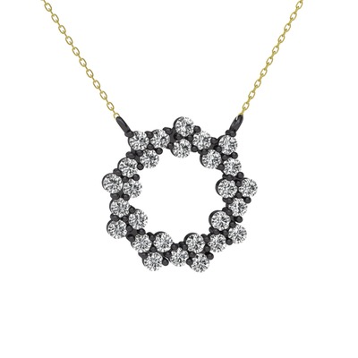 Beyaz zirkon 925 ayar siyah rodyum kaplama gümüş kolye (40 cm altın rolo zincir)