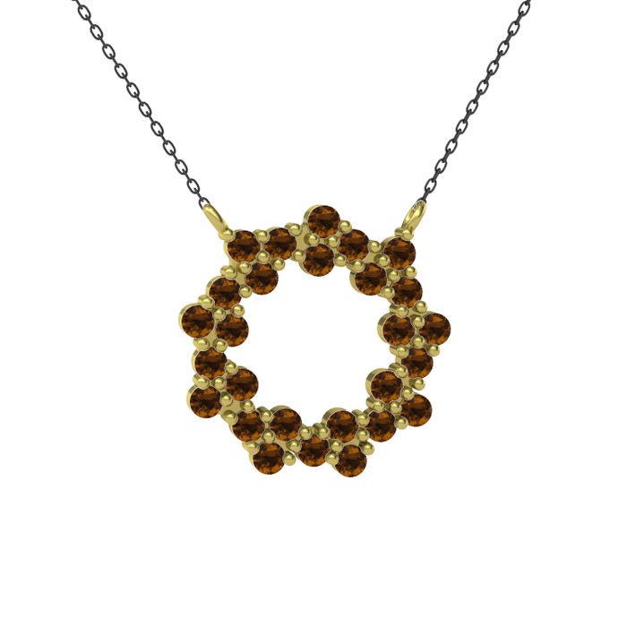 Dumanlı kuvars 14 ayar altın kolye (40 cm gümüş rolo zincir)