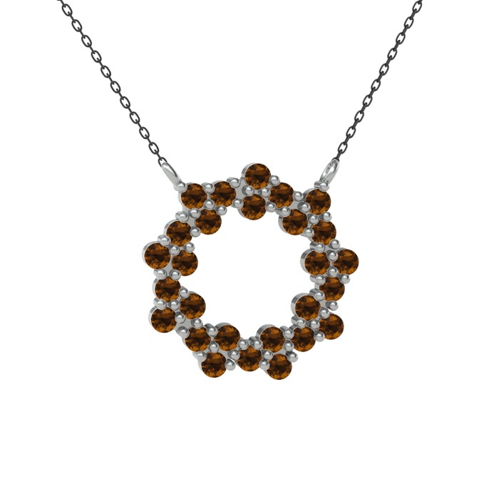 Dumanlı kuvars 14 ayar beyaz altın kolye (40 cm gümüş rolo zincir)