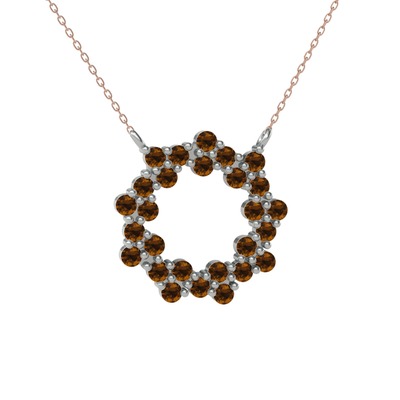 Dumanlı kuvars 18 ayar beyaz altın kolye (40 cm rose altın rolo zincir)