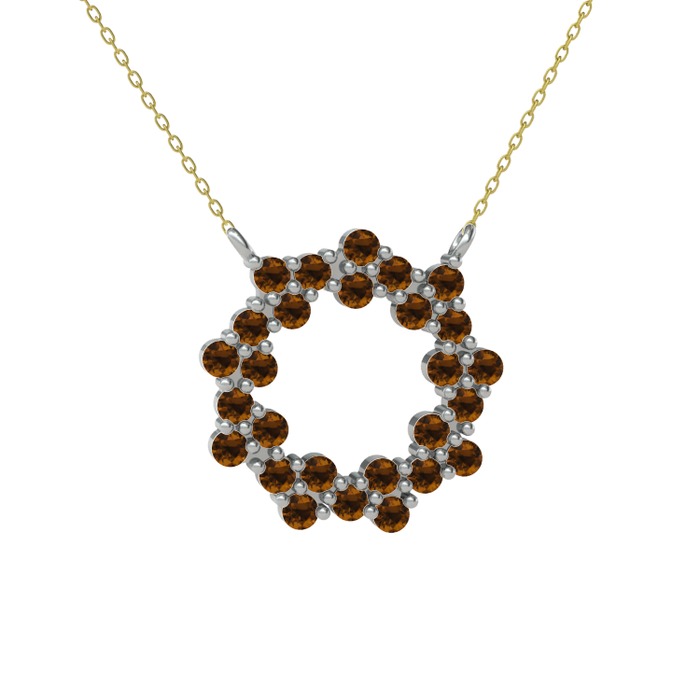 Dumanlı kuvars 8 ayar beyaz altın kolye (40 cm altın rolo zincir)