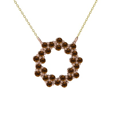 Dumanlı kuvars 8 ayar rose altın kolye (40 cm altın rolo zincir)