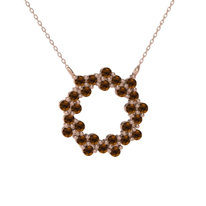 Dumanlı kuvars 925 ayar rose altın kaplama gümüş kolye (40 cm rose altın rolo zincir)