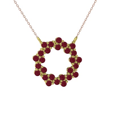 Kök yakut 14 ayar altın kolye (40 cm rose altın rolo zincir)