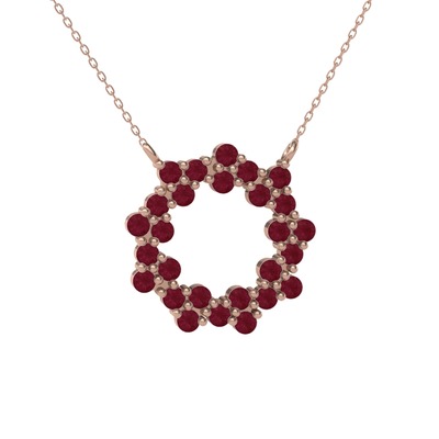 Kök yakut 18 ayar rose altın kolye (40 cm rose altın rolo zincir)