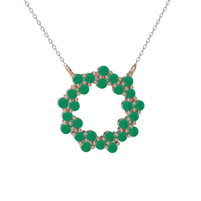 Kök zümrüt 8 ayar rose altın kolye (40 cm beyaz altın rolo zincir)