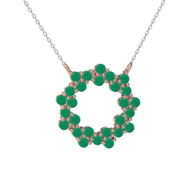 Kök zümrüt 8 ayar rose altın kolye (40 cm gümüş rolo zincir)