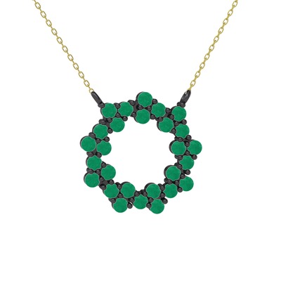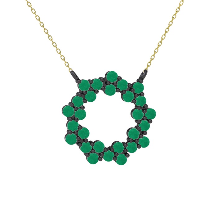 Kök zümrüt 925 ayar siyah rodyum kaplama gümüş kolye (40 cm altın rolo zincir)