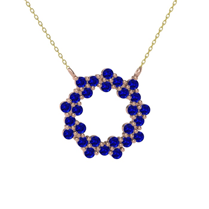Lab safir 14 ayar rose altın kolye (40 cm altın rolo zincir)