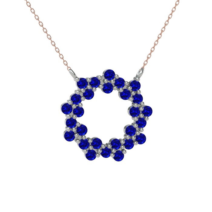 Lab safir 8 ayar beyaz altın kolye (40 cm rose altın rolo zincir)