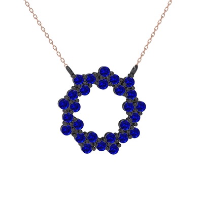 Lab safir 925 ayar siyah rodyum kaplama gümüş kolye (40 cm rose altın rolo zincir)