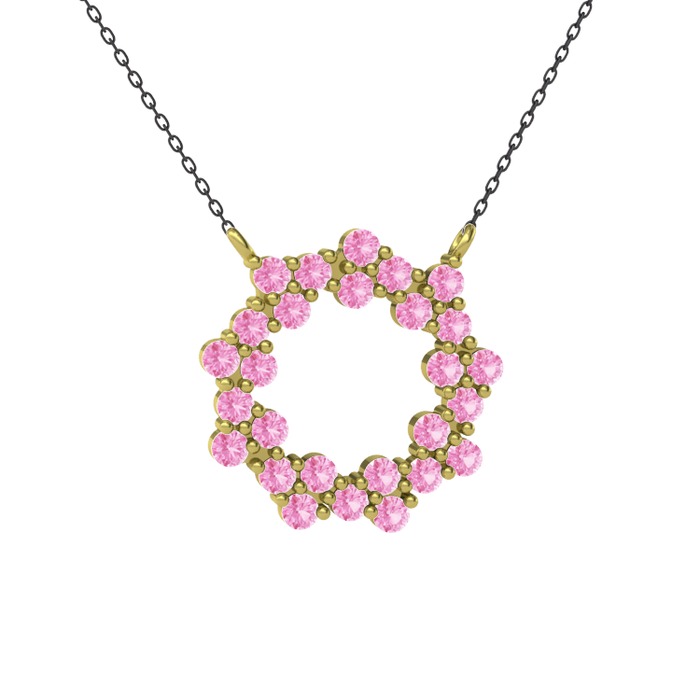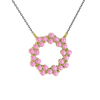 Pembe kuvars 14 ayar altın kolye (40 cm gümüş rolo zincir)