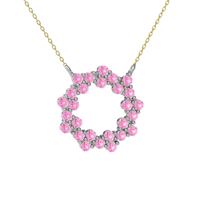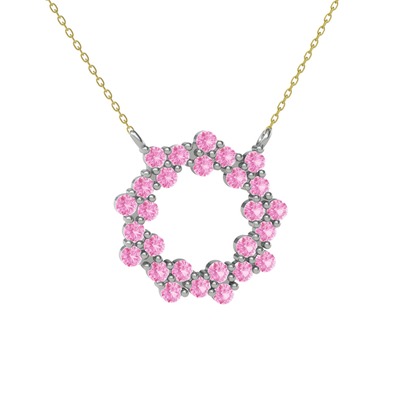 Pembe kuvars 14 ayar beyaz altın kolye (40 cm gümüş rolo zincir)