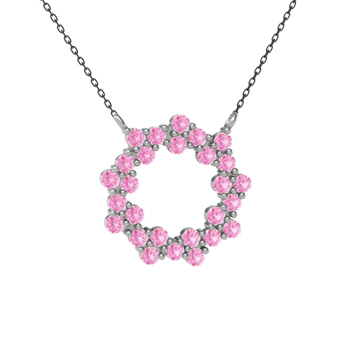 Pembe kuvars 8 ayar beyaz altın kolye (40 cm gümüş rolo zincir)