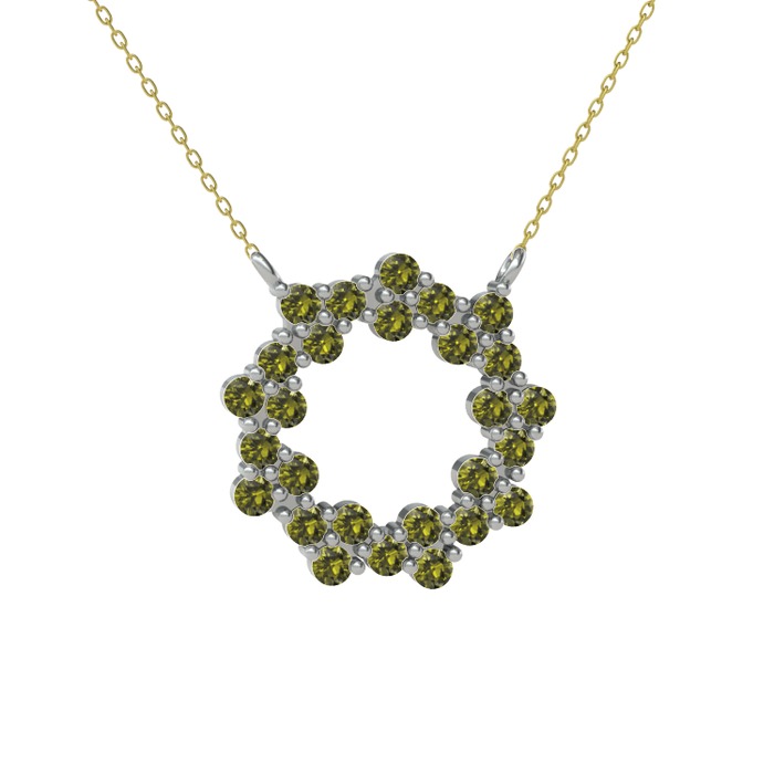 Peridot 14 ayar beyaz altın kolye (40 cm altın rolo zincir)
