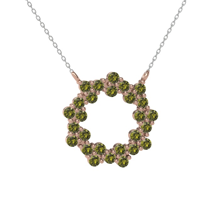 Peridot 14 ayar rose altın kolye (40 cm gümüş rolo zincir)