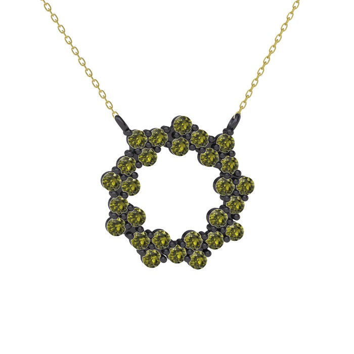 Peridot 925 ayar siyah rodyum kaplama gümüş kolye (40 cm altın rolo zincir)