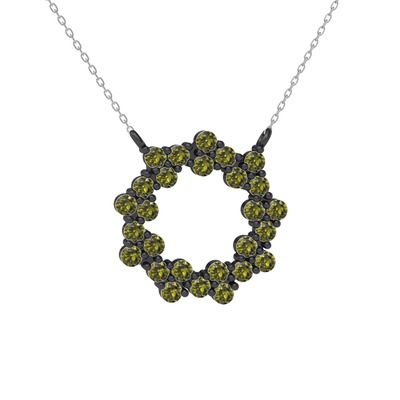 Peridot 925 ayar siyah rodyum kaplama gümüş kolye (40 cm beyaz altın rolo zincir)