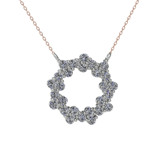 Pırlanta 14 ayar beyaz altın kolye (0.972 karat, 40 cm rose altın rolo zincir)