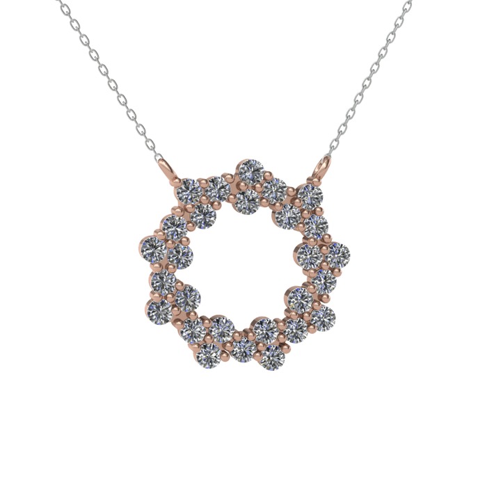 Pırlanta 8 ayar rose altın kolye (0.972 karat, 40 cm beyaz altın rolo zincir)