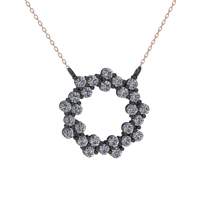 Pırlanta 925 ayar siyah rodyum kaplama gümüş kolye (0.972 karat, 40 cm rose altın rolo zincir)