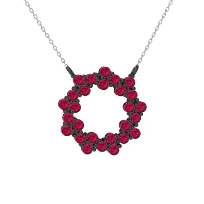 Rodolit garnet 925 ayar siyah rodyum kaplama gümüş kolye (40 cm beyaz altın rolo zincir)