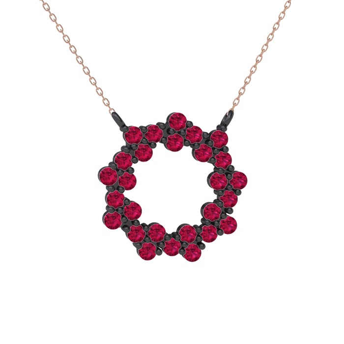Rodolit garnet 925 ayar siyah rodyum kaplama gümüş kolye (40 cm rose altın rolo zincir)