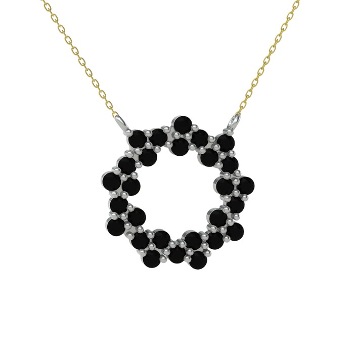 Siyah zirkon 18 ayar beyaz altın kolye (40 cm altın rolo zincir)