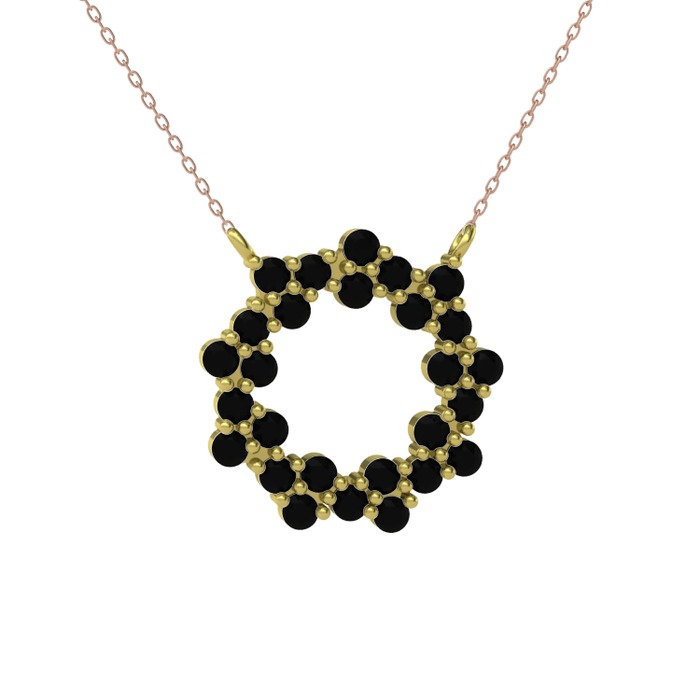 Siyah zirkon 925 ayar altın kaplama gümüş kolye (40 cm rose altın rolo zincir)