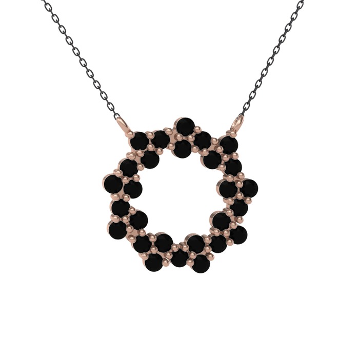 Siyah zirkon 925 ayar rose altın kaplama gümüş kolye (40 cm gümüş rolo zincir)