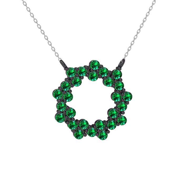 Yeşil kuvars 925 ayar siyah rodyum kaplama gümüş kolye (40 cm beyaz altın rolo zincir)