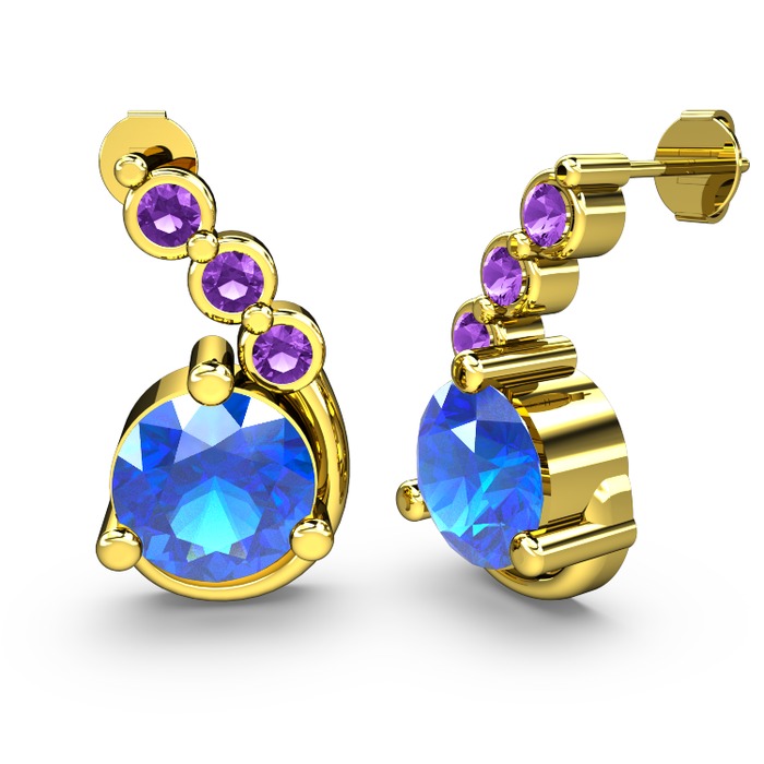 Akuamarin ve ametist 18 ayar altın küpe