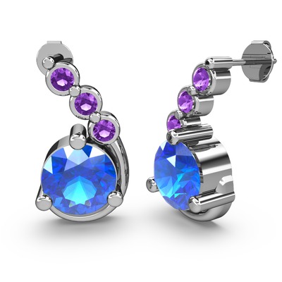 Akuamarin ve ametist 18 ayar beyaz altın küpe